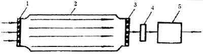 1-入口膜;2-衰變筒;3-出口膜;4-流量計;5-抽氣泵